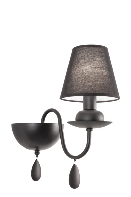 Interiérová nástenná lampa s kovovou konštrukciou a textilným tienidlom, k dispozícii v troch prevedeniach: biela štruktúra s bielymi tienidlami, čierna štruktúra s čiernymi tienidlami alebo štruktúra s bronzovou úpravou a tienidlá vo farbe slonoviny. Tienidlá je možné objednať samostatne a rôzne nakombinovať so štruktúrou.